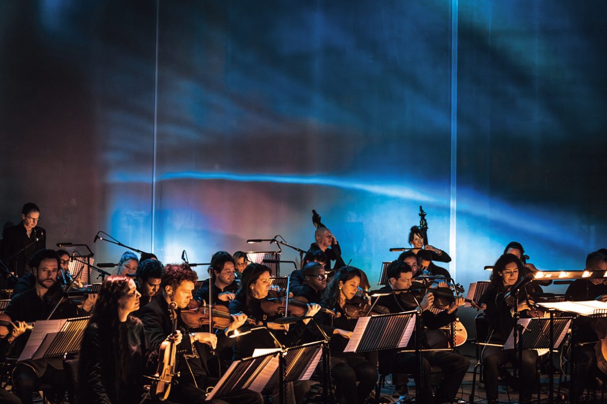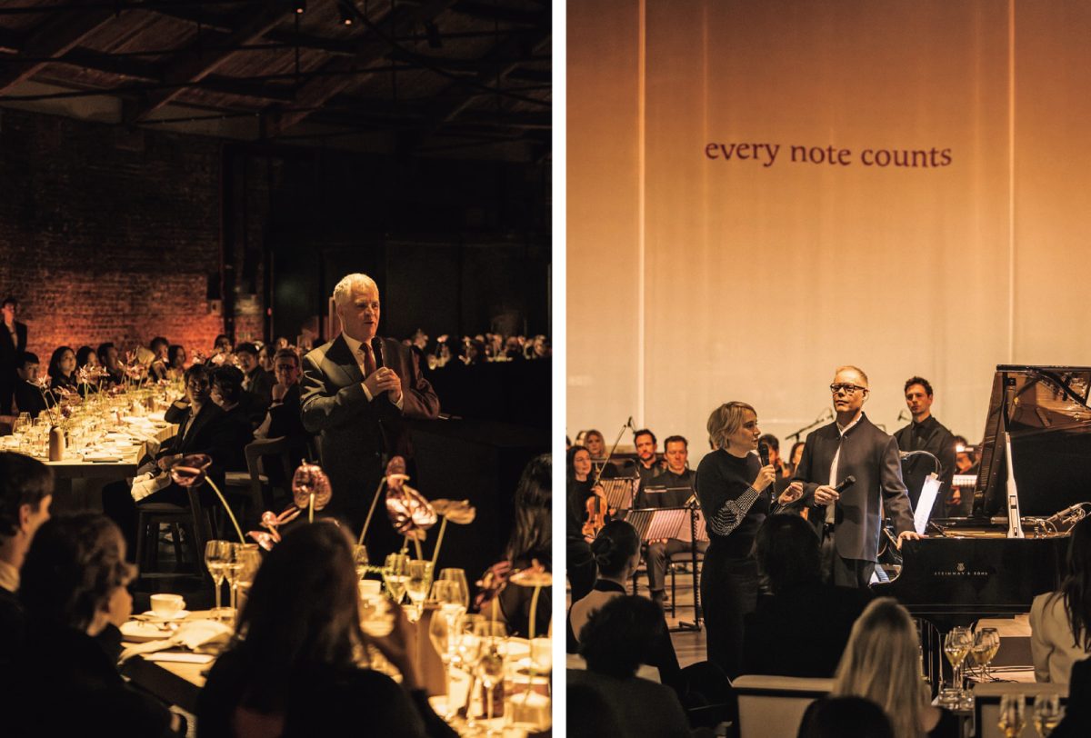 クリュッグの奥深い味わいと音楽の融合を表現する「KRUG×MUSIC」の最新章となる「Every Note Counts(すべての音に意味がある)」は、セラーマスターのジュリー・カヴィル氏と、マックス・リヒター氏の2年以上にわたる対話によって実現。そのお披露目の舞台となったのは、ロンドン・カムデン地区にあるラウンドハウス。円形が特徴的な空間の中央にはグランドピアノ、それを囲むようにオーケストラと客席が配置され、ゲストは生演奏によるミュージック・テイスティングへと誘われた。