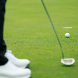 ジャケットのブルーベースを拾い、トップスは青を基調としたニットポロやマフラーで爽やかさをアピール。スリムな白パンツがそれを加速。このままではさっぱりした印象になるが、そこで頼りになるのが革靴だ。ダークトーンの硬派なレザーがコーディネイトを引き締める。