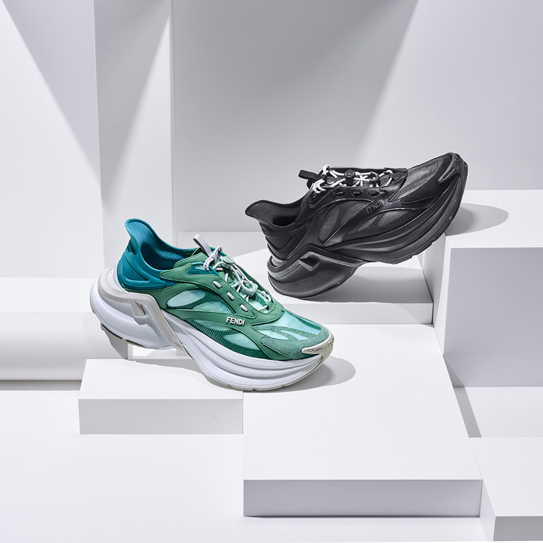 側面には流線的に描かれた「F」モチーフを刻印し、視覚的なインパクトとブランドアイデンティティをさりげなく主張。かかと部分にエンボスで施された「FENDI」ロゴも、ストリートとラグジュアリーを横断する象徴的なディテールとなっている。