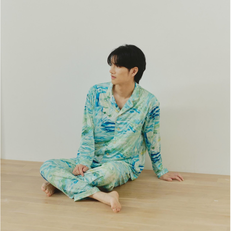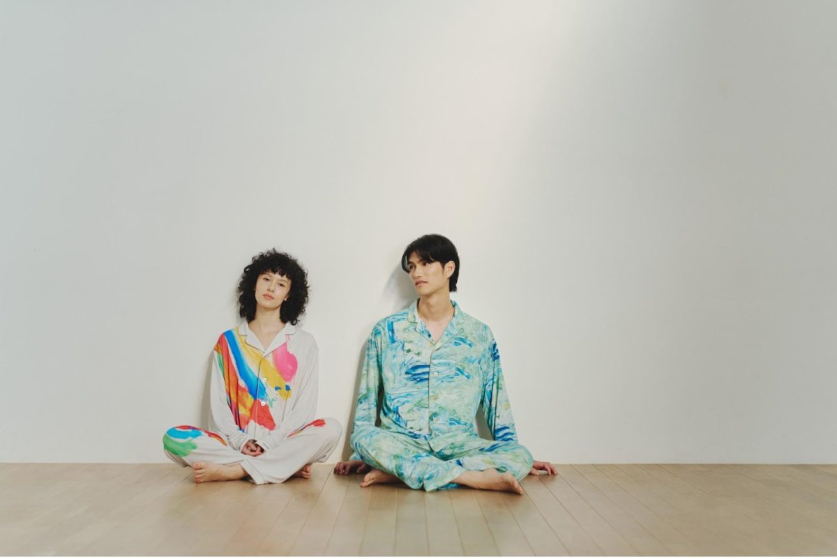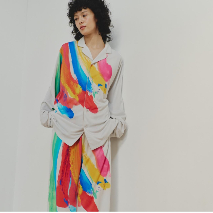 パジャマに描かれた色鮮やかなアートは、へラルボニーの契約作家2名によるもの。それぞれ透き通るような寒色と大胆なタッチの暖色が印象的な、唯一無二のデザインとなっている。