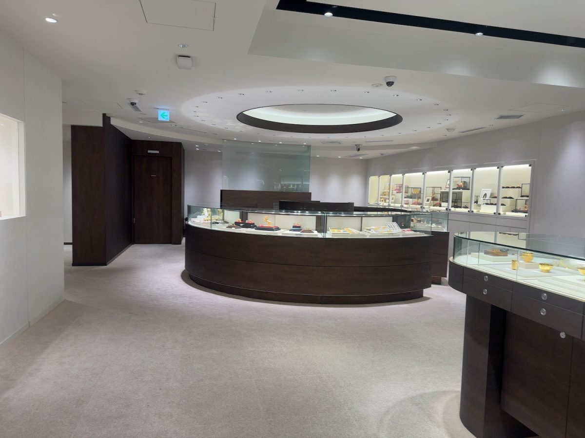 11時半ぴったりに店へ戻り、カウンターのある4階フロアへ。しかし、まだ前に15人ほど並んでいたため、時間つぶしに2階のジュエリーフロアを覗くことに。