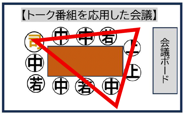 そもそも小さな会話の三角形しか生まれない空間なのに、「どうして発言しない?」「アイツらは意見がないのか?」と、矛先を向けられる若手社員はとてもツラいんですね。