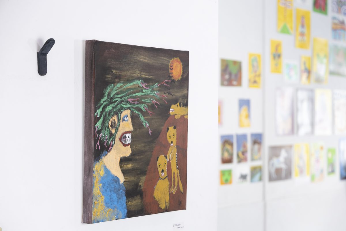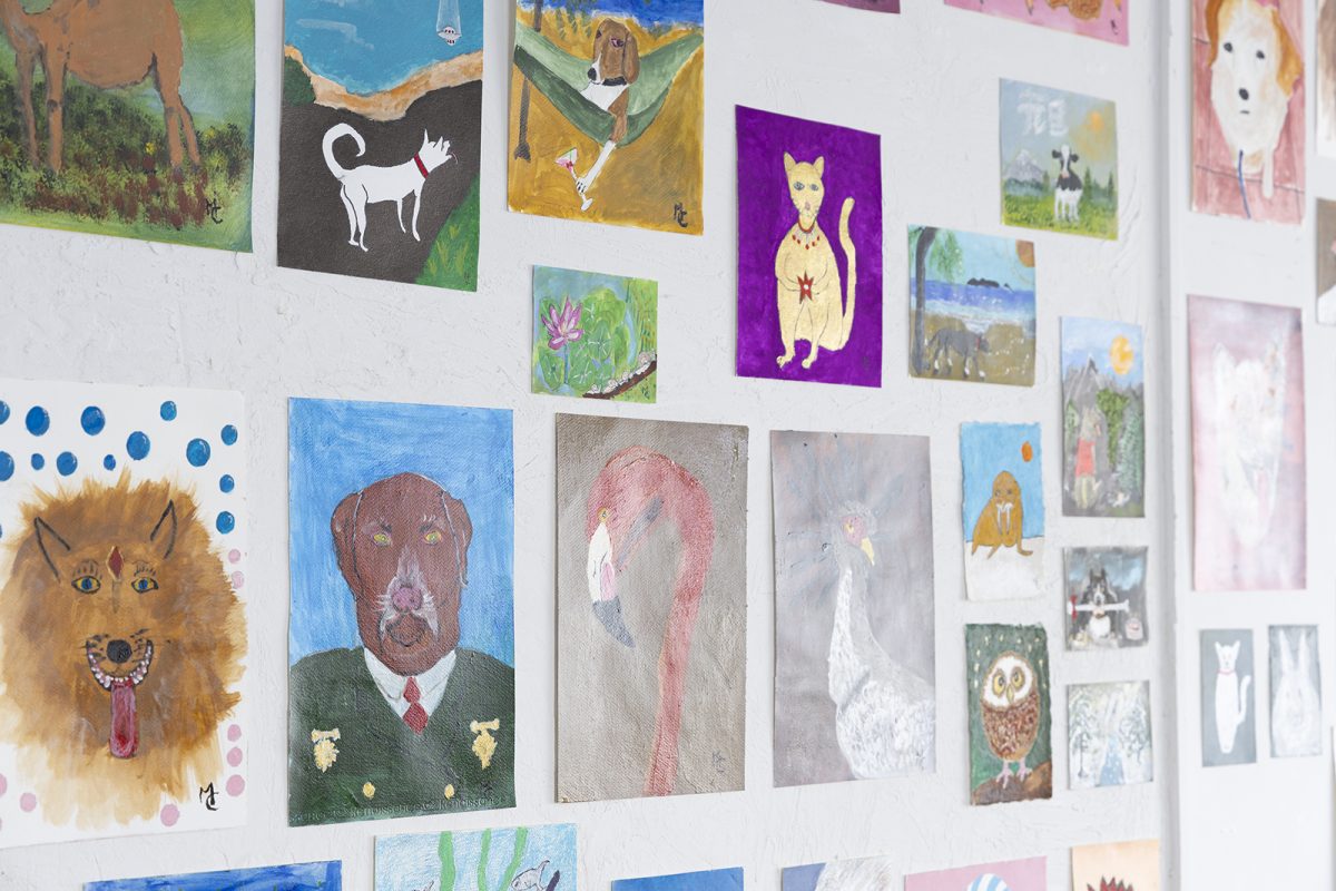 ミッキー だってね、なんか。毎日描きたくなるからね(※結果180点ほど展示されていた)。