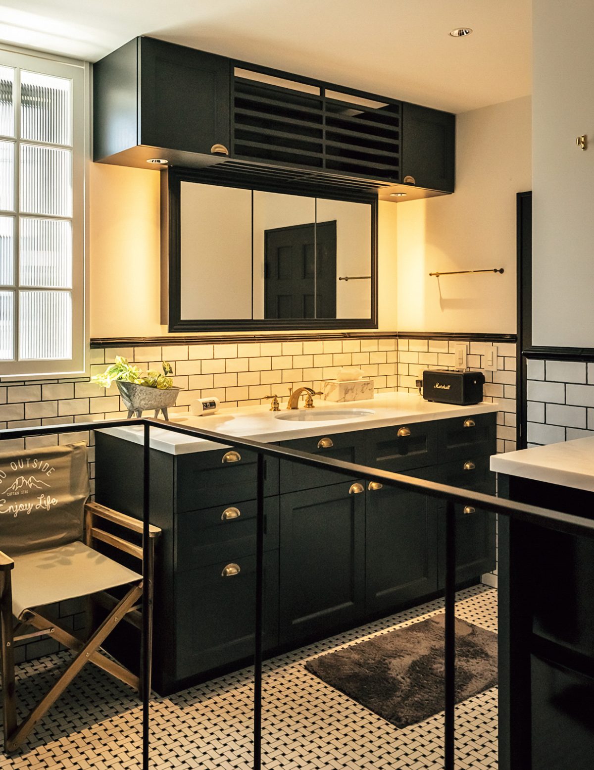 別荘のデザインはすべて自らアイデアを出すという西山氏。今回のガレージハウスというコンセプトだけでなく、古材やモルタルを使ったラスティックな雰囲気や、それこそ水回りのタイル1枚にいたるまで、求めるイメージに近いものを探し、なければオリジナルで作るほど、そのこだわりは細部にまで息づいている。