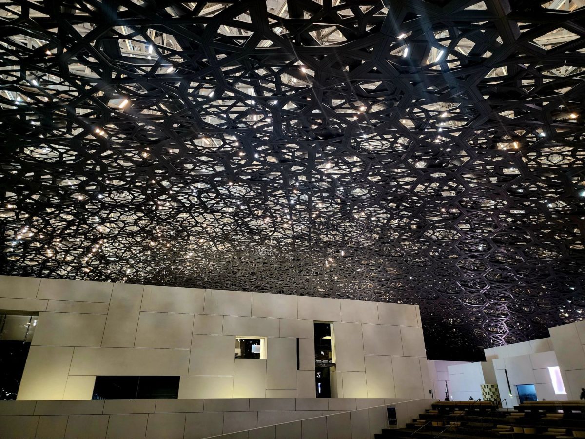 ルーヴル・アブダビは、UAEのサディヤット島に位置する、アラブ世界初の特定の地域や時代、文化に限定されず、人類共通の歴史や物語を全地球的な視点で紐解こうとするユニバーサル・ミュージアムです。フランスの建築家ジャン・ヌーヴェルが設計した建物は、伝統的なアラビア建築の意匠を反映した巨大な銀色のドーム屋根が特徴です。
