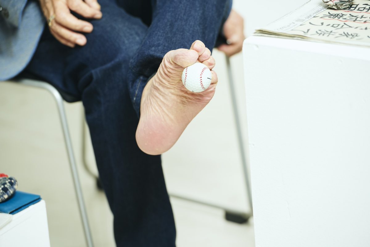 大村 そう。そしたら今度はボールを指の付け根辺りに持ってきて、足指をすぼめて、ボールを握るんですよ。